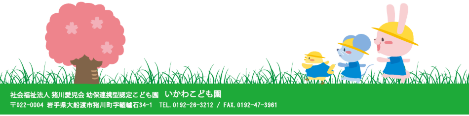 | 場 所 | いかわこども園 病後児保育室 住 所 〒022-0004 岩手県大船渡猪川町字轆轤石34-1 電 話 0192-26-3212 |