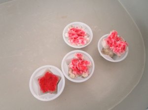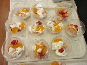 3歳児さんは、クリスマスパフェ作りをしました。