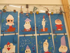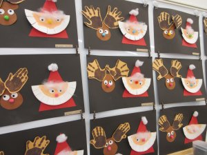 リースやトナカイ、各クラス可愛らしい作品が並びます。