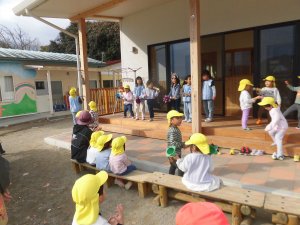 以上児さんは大喜びで園庭に駆け出しました。