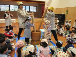 お供え餅を作るもちつき会が行われました。