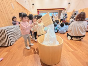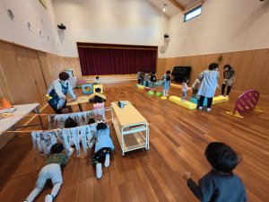 0歳児から4歳児まで、あちこち部屋を移動しながら楽しみました。